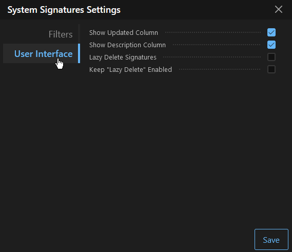 - Under the User Interface section, enable the ‘Show Updated Column’ and ‘Show Description Column’ options. The other options should be disabled.